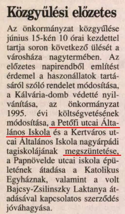 PETŐFI UTCAI ÁLTALÁNOS ISKOLA ARCHÍVUMA